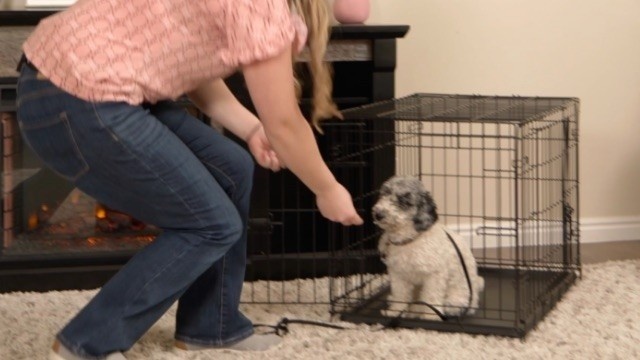 Learn how to introduce your dog to a crate and get them comfortable going in and out by themselves to learn this is a safe place to sleep through the night.